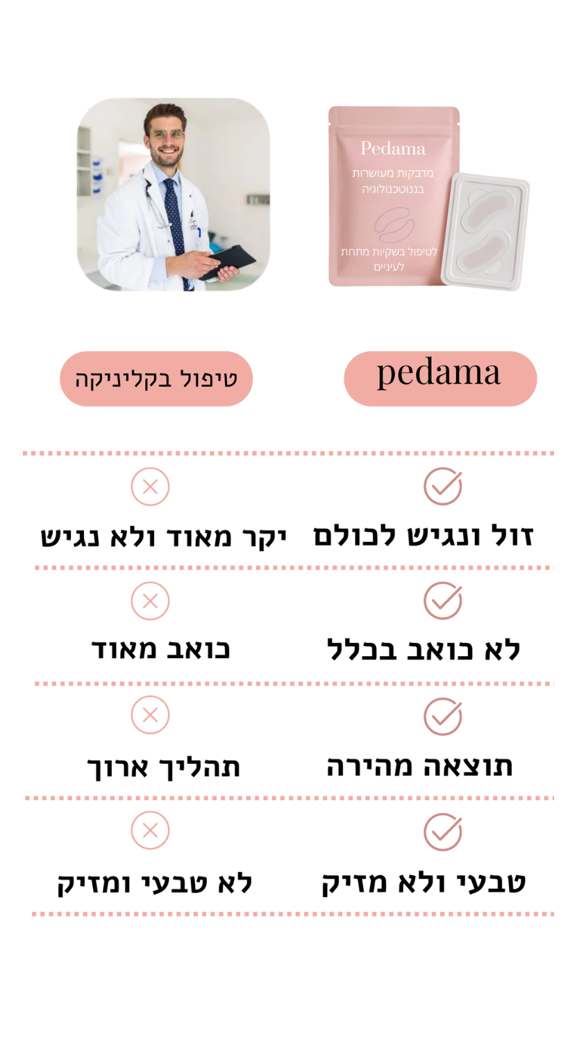 השתמשתי ב־PEDAMA כבר שבוע, וכל יום אני שמה לב שהעור מתחת לעיניים נהיה חלק יותר.
